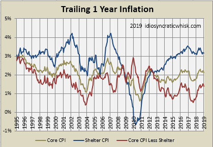 The measure he uses shows 7% excess inflation since 2000. "Shelter" excess inflation is 10%. "Rent of primary residence" excess inflation is 21%. Is that still "very tiny"?